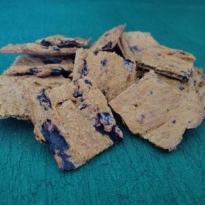 Sweet potato, oat flour, egg, blueberries, flaxseed, kelp.